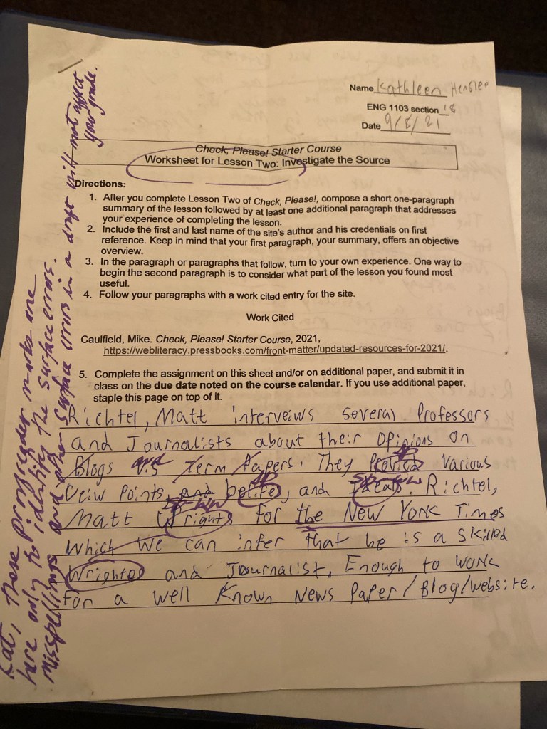In Check Please #5 We wrote about Mike Caufield’s Check, Please! Starter Course. Then we wrote about all of the other Check, Please! When the 5th Check Please came around I had finally understood the second undisclosed assignment in all of them. The first four assignments were really hard for me to comprehend and I failed them miserably. After going to see Dr. Lucas during her after hours I learned what she was truly looking for and I improved.