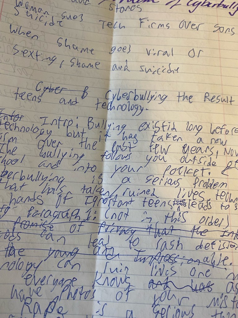The second thing that helped me be a better writer was writing longhand. It helps to get all of my thoughts out on paper. Then I can order them so the ideas flow more cohesively. As well as get rid of anything that does not fit the theme or just seem out of place. This practice is great for organization and editing. I can change the vocabulary that I use and see if it flows better. I look through it to try and find any grammatical/punctuation errors. One of the drawbacks is that I have to decipher my own handwriting, which can be difficult at times. The second drawback is my spelling. Typing is nice because it has spell check and as someone with spelling dyslexia, spell check is really nice. In the book Writing Analytically by David Rosenwasser and Jill Stephen, when referring to writing on computers, they write, “It is easy to capture things quickly if you are writing on a computer. It is also easier to read what you have written, since too often a potentially great idea turns out to be indecipherable scribble (page 124)”. We practice writing longhand when we do check please assignments. Check Please #2 We wrote about the article “Blogs vs Term Papers” by Matt Richtel. This is where we do rough drafts about an article we read in class. Normally we talk about the author and then our opinions on the topic/our experience with the topic. Then we turn them in and get feedback which can help us turn our rough draft into our final draft.
